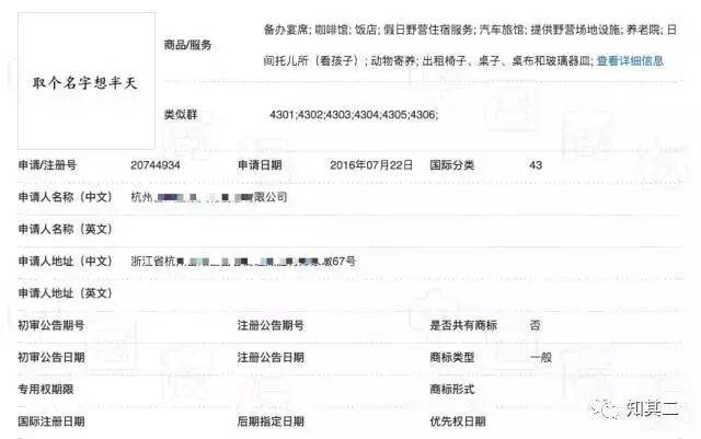这不,有人受不了寂寞了,直接注册了一个“取个名字想半天”的商标。就是下面这样: